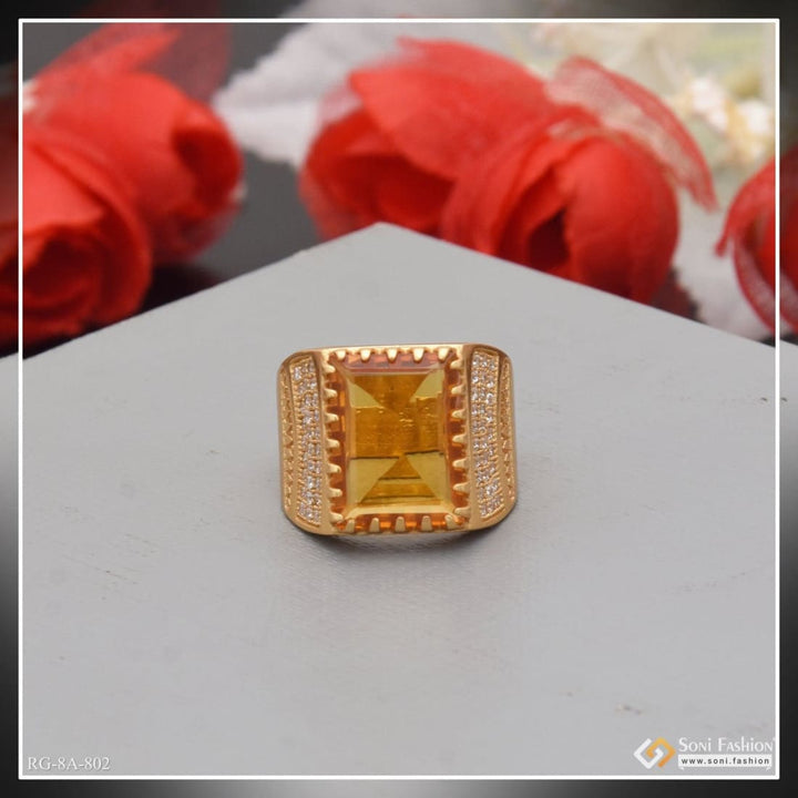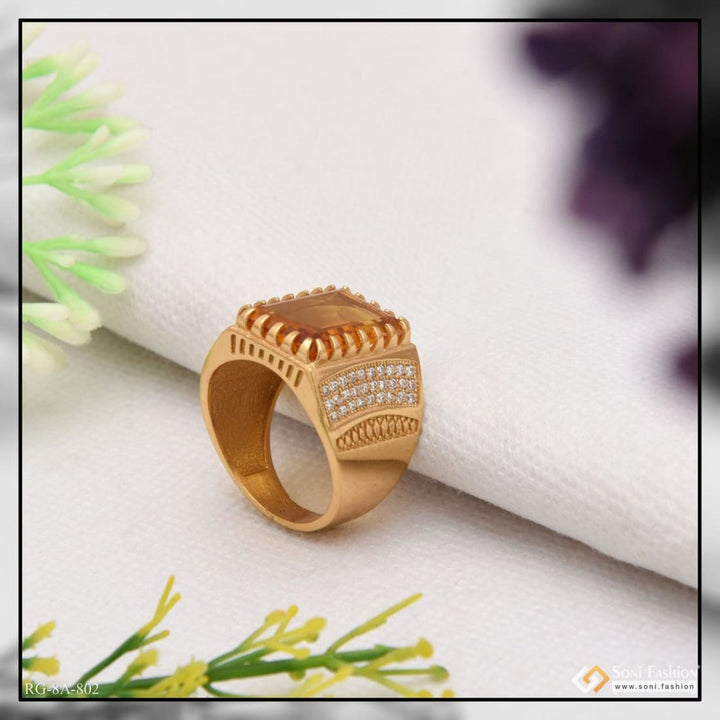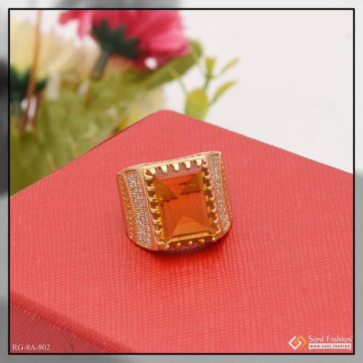 Orange Stone with Diamond Latest Design High-Quality Gold Plated Ring - Style A802