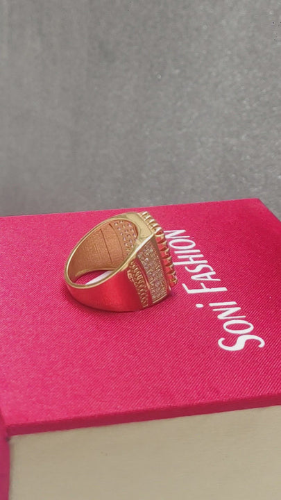 Add a touch of royalty to your collection with this yellow textured golden ring featuring a stunning orange stone and sparkling diamond accents. Crafted from high-quality brass with a gold-plated finish, this elegant ring combines durability with luxury. Its intricate design and radiant colors make it a perfect statement piece for any occasion.