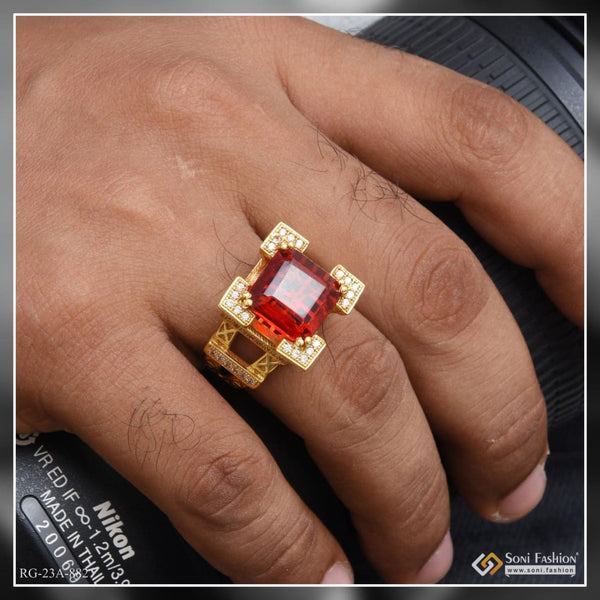 1 Gram Gold Forming Red Colour with Diamond Gold Plated Ring for Men - Style A954
