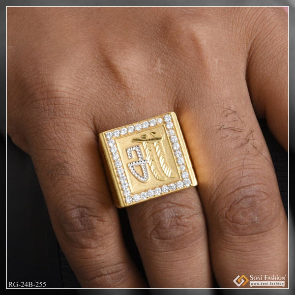 1 Gram Gold Plated Om With Diamond Finely Detailed Design Ring For Men - Style B318