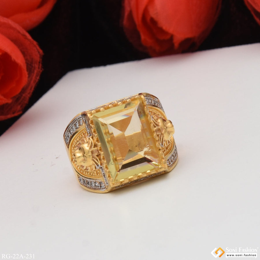 1 Gram Gold Plated Awesome Design Yellow Stone Ring for Men - Style B689