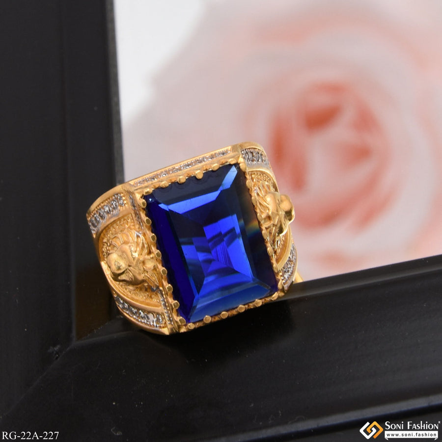 1 Gram Gold Plated Blue Stone with Diamond Gorgeous Design Ring - Style A281