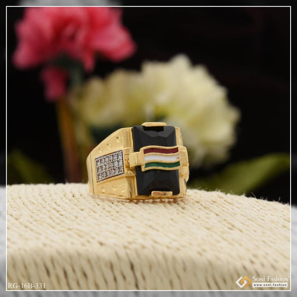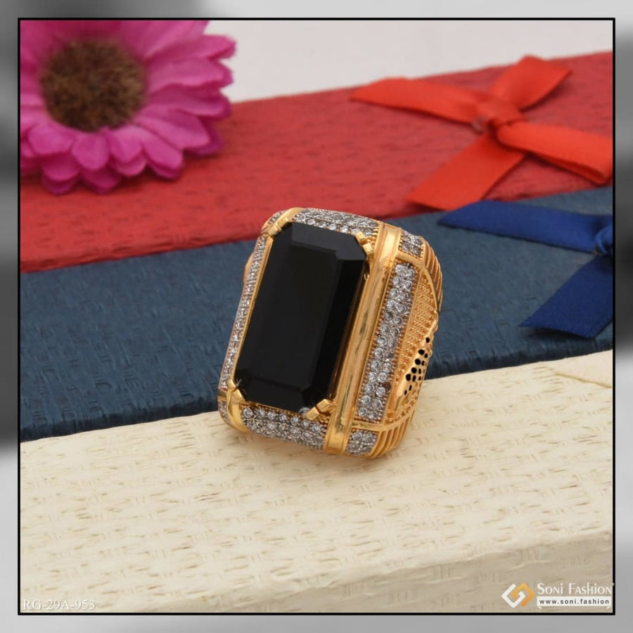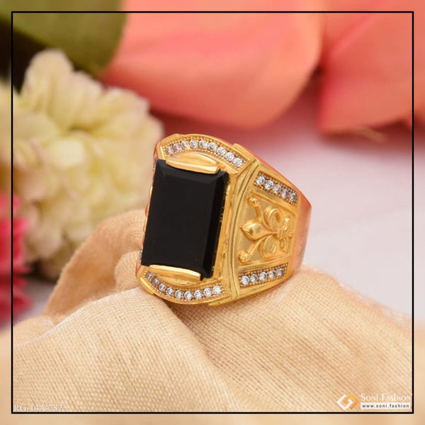 1 Gram Gold Plated Black Stone Lovely Design High-Quality Ring for Men - Style B140