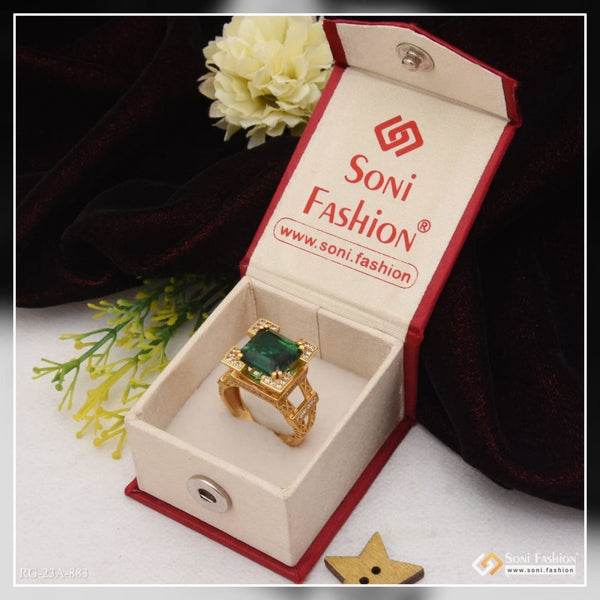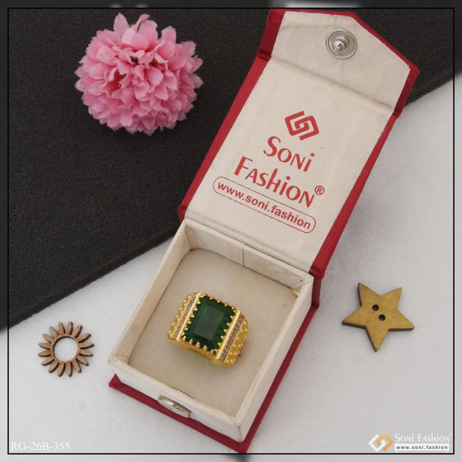 1 Gram Gold Plated Green Stone with Diamond Best Quality Ring for Men - Style B361