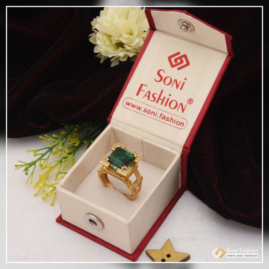 1 Gram Gold Plated Green Stone with Diamond Best Quality Ring for Men - Style B201