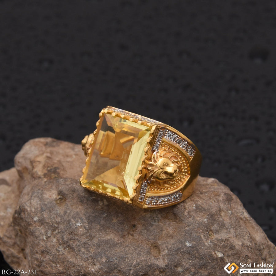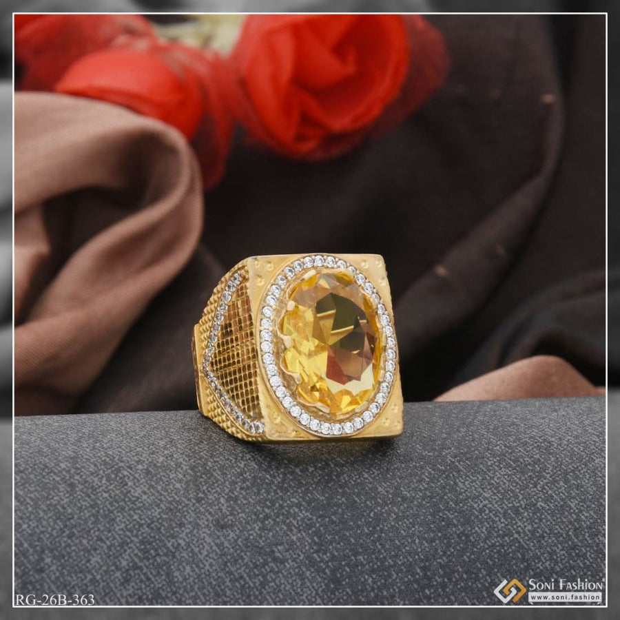 1 Gram Gold Plated Yellow Stone Ring for Men - Style B712