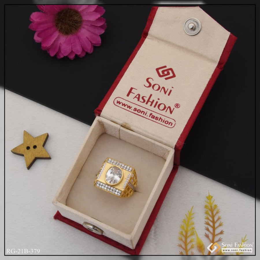 1 Gram Gold Plated Yellow Stone Ring for Men - Style B710