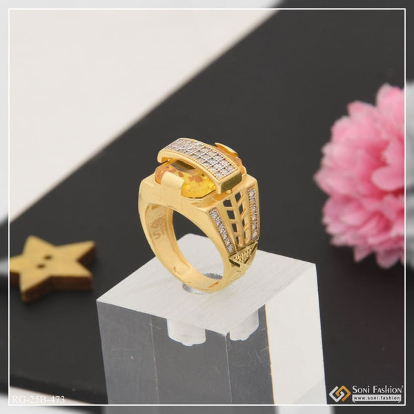1 Gram Gold Plated Yellow Stone with Diamond Best Quality Ring for Men - Style B480