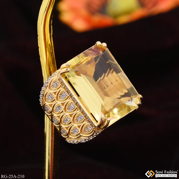 1 Gram Gold Plated Yellow Stone With Diamond Glamorous Design Ring - Style A950