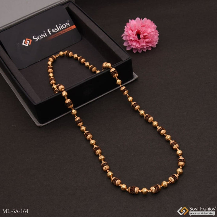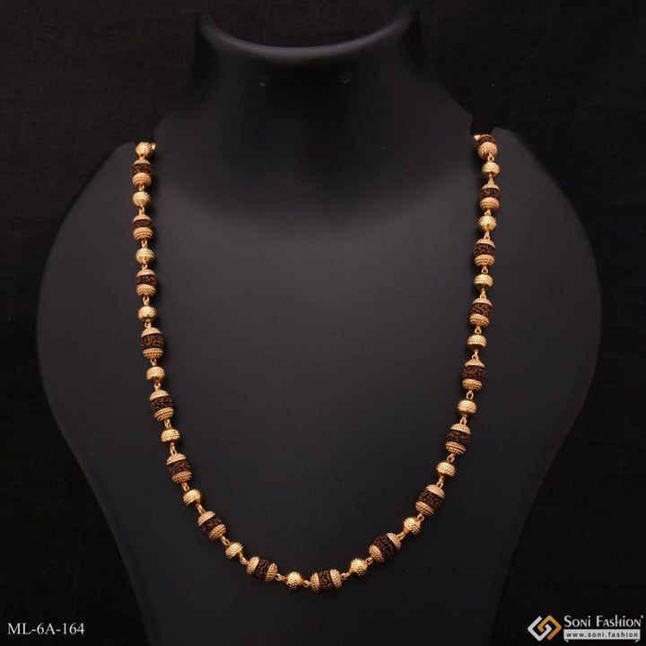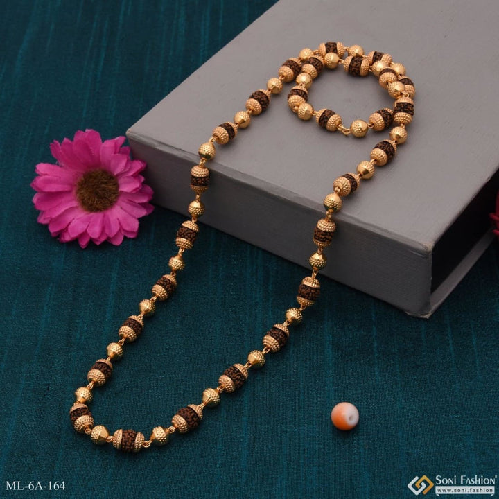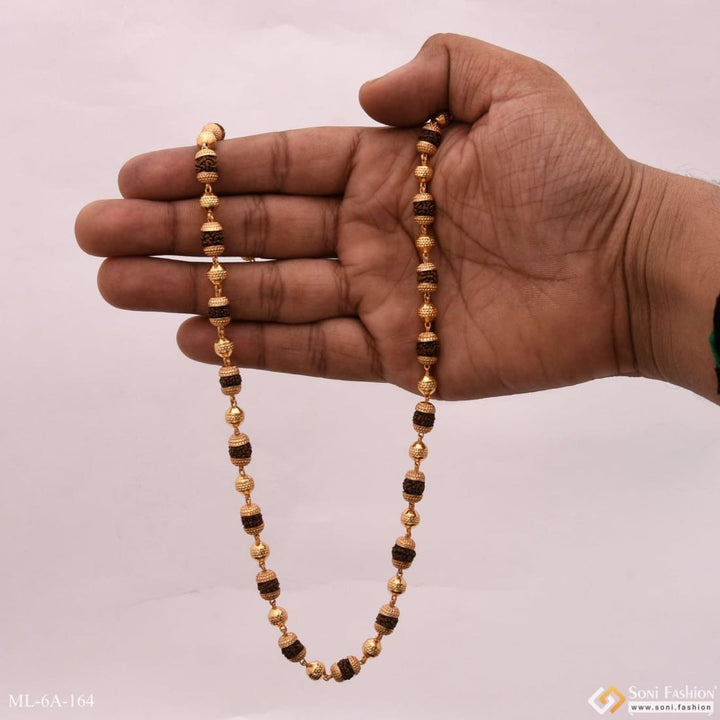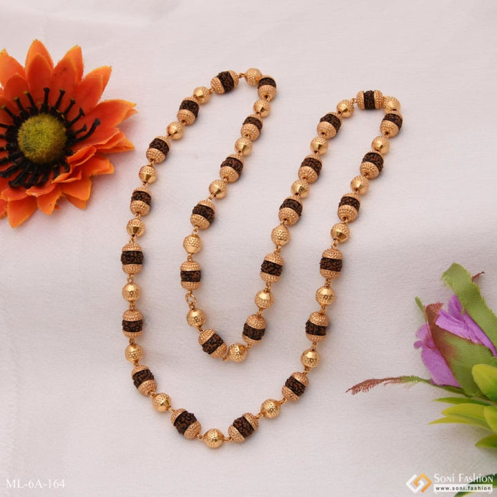 Mala with Golden Ball Streamlined Design Gold Plated Rudraksha Mala - Style A164