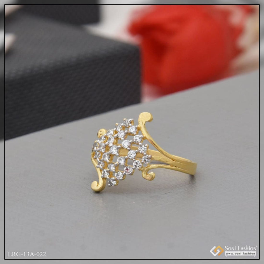 1 Gram Gold Plated with Diamond Decorative Design Ring for Ladies - Style LRG-022