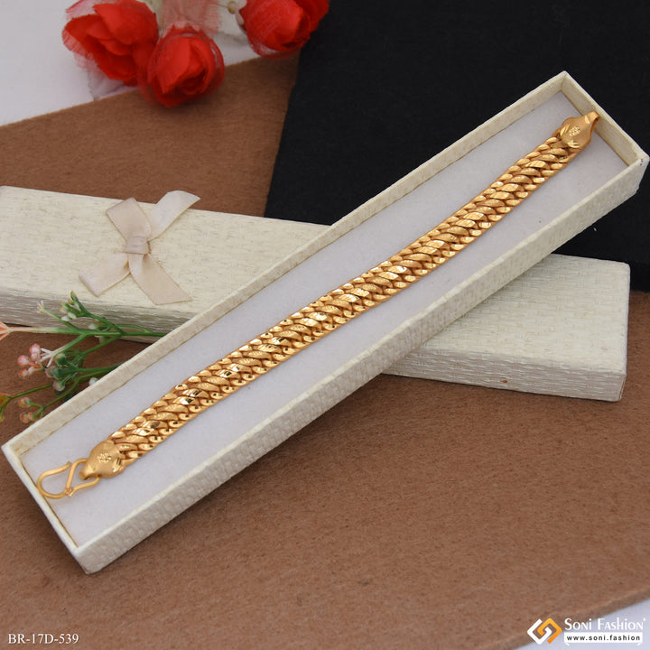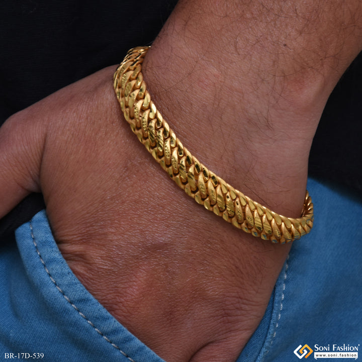 Featuring a shining gold plated design with intricate filigree detailing, this Excellent Design bracelet combines royal elegance with durable brass construction. The regular size is perfect for men and the hid_reg_plating...