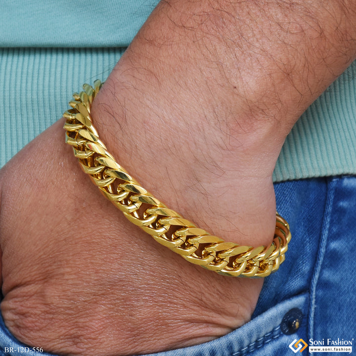 This extraordinary stainless steel bracelet for men features a shining, royal design that exudes a hip hop flair. Crafted with high-quality materials, including a hidden-regulated plating, this golden bracelet adds a touch of sophistication to any outfit. Elevate your style with this sleek and versatile bracelet.