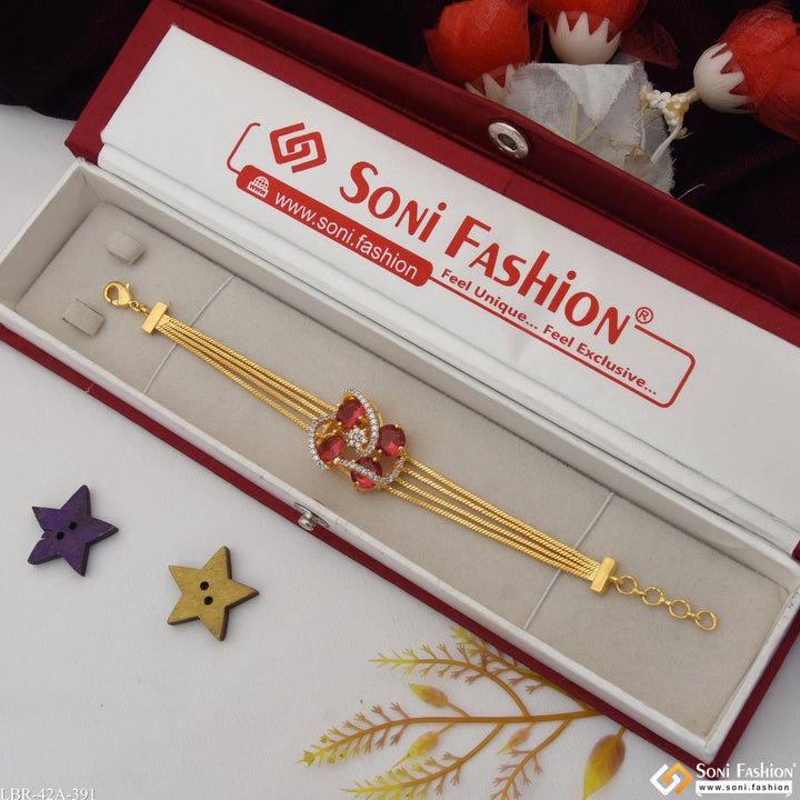 1 Gram Gold Plated Sparkling Design Bracelet for Ladies - Style A391