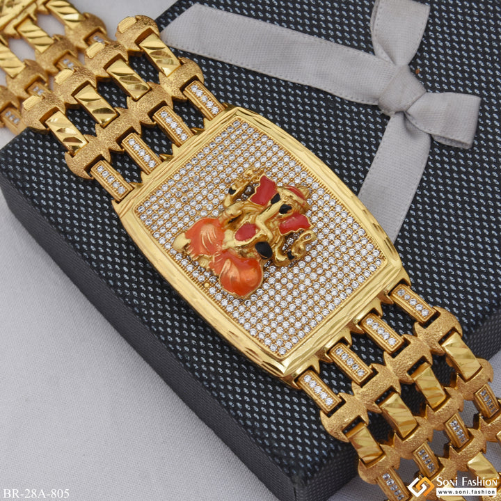 4 Line Ganesha with Diomonds In Rectangle Gold Plated Bracelet - Style A805