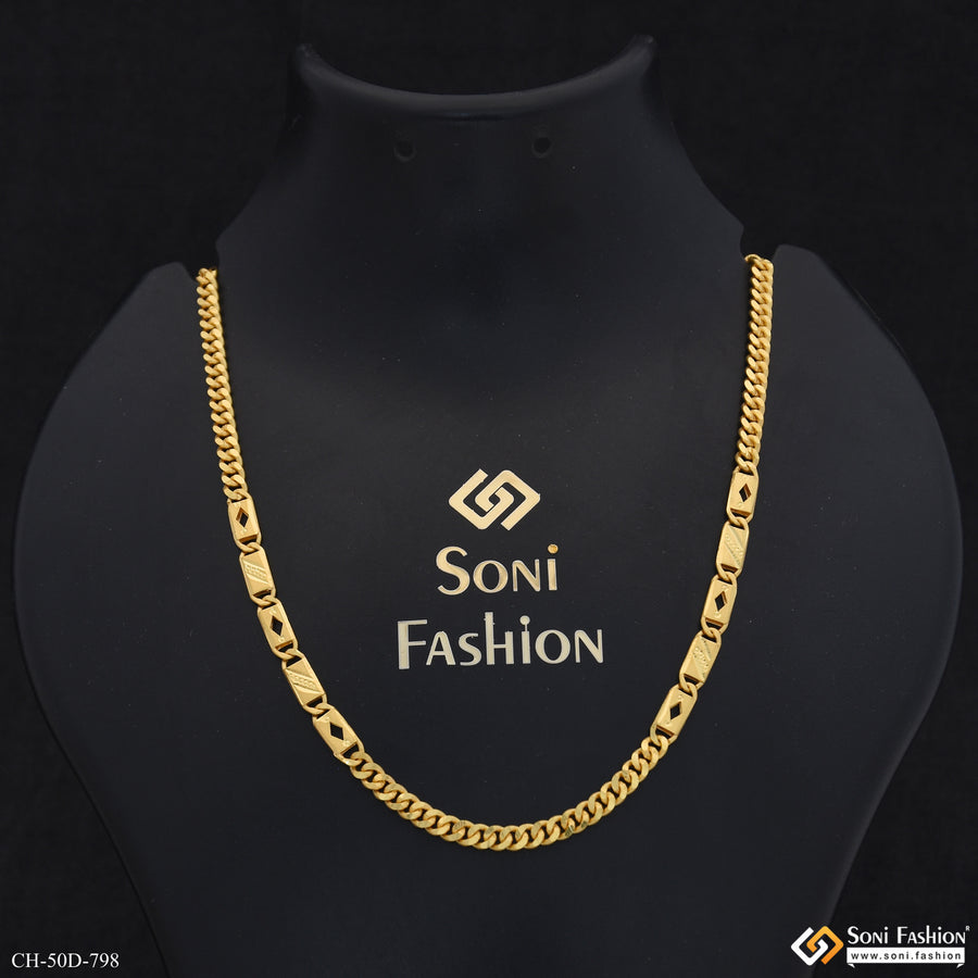 1 Gram Gold Plated Diamond Cut Design Chain for Men - Style E436
