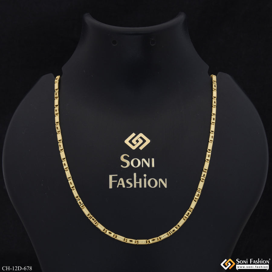 This 1 gram gold-plated Nawabi chain for men features a shining, royal design with a filigree pattern crafted in brass. The 20-inch chain offers a matt golden finish with rhodium...