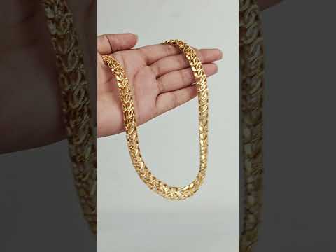 This 1 gram gold plated chain for men features a shining brass material and a popular filigree design. With its Rajwadi style and 21 inch length, this chain is perfect for adding a touch of elegance to any outfit. Elevate your style with this miligram gold chain.