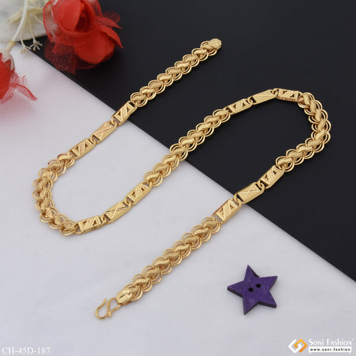 1 Gram Gold Plated Nawabi Kohli Antique Design Chain for Men - Style D187