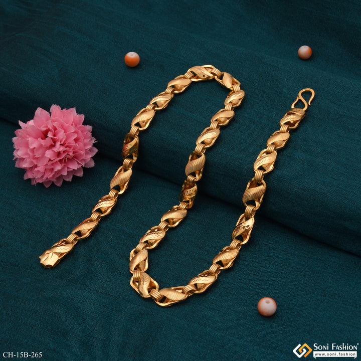 Kohli Leaf Cube Cool Design Superior Quality Gold Plated Chain For Men - Style B265