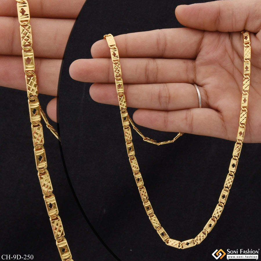 1 Gram Gold Plated Glittering Design Rajwadi Chain for Men - Style E155