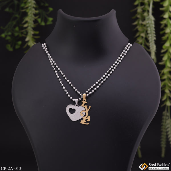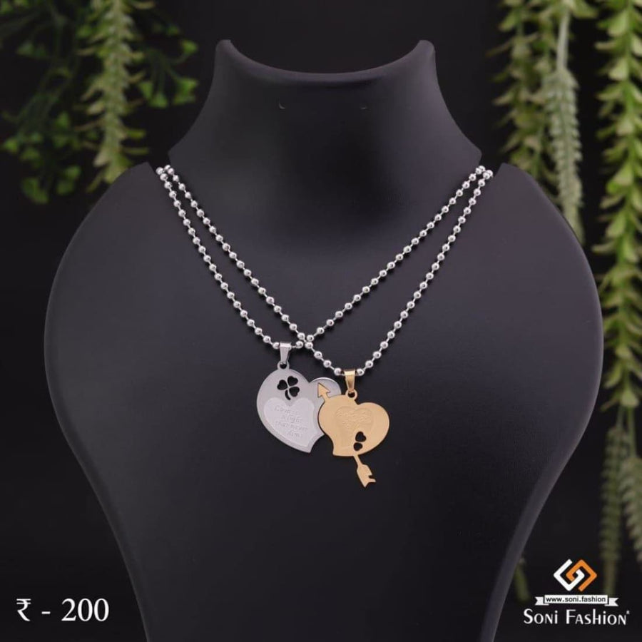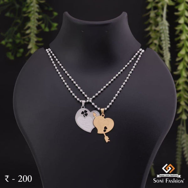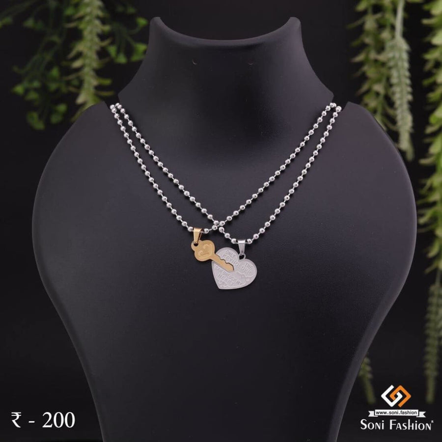 Best Love Couple Engagement Gift - 2 Locket With 2 Chain - Stainless Steel Made - Style A039