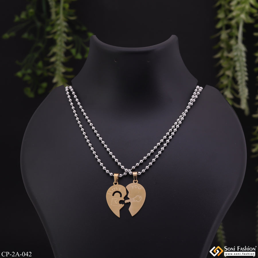Lock n Key Boy and Girl Locket Couple Chain with Pendant for Valentine's Day Gift - Style A042