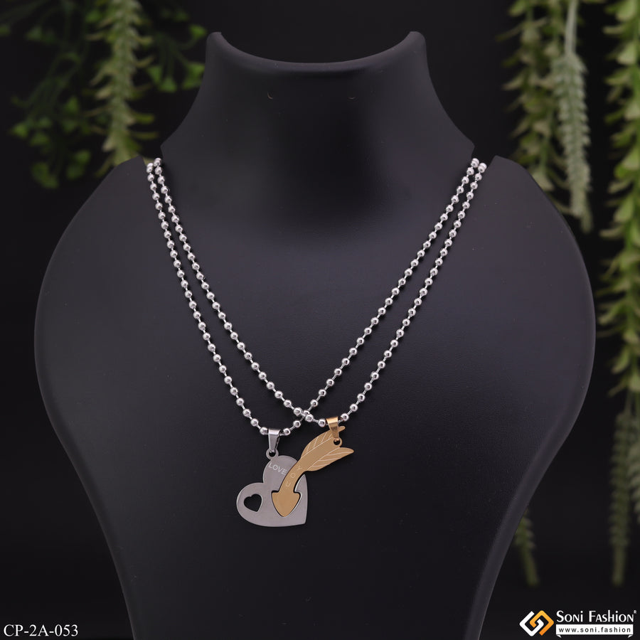 2 Heart with Arrow Couple Chain Pendant Set - Stainless Steel - Valentine Day - Style A010