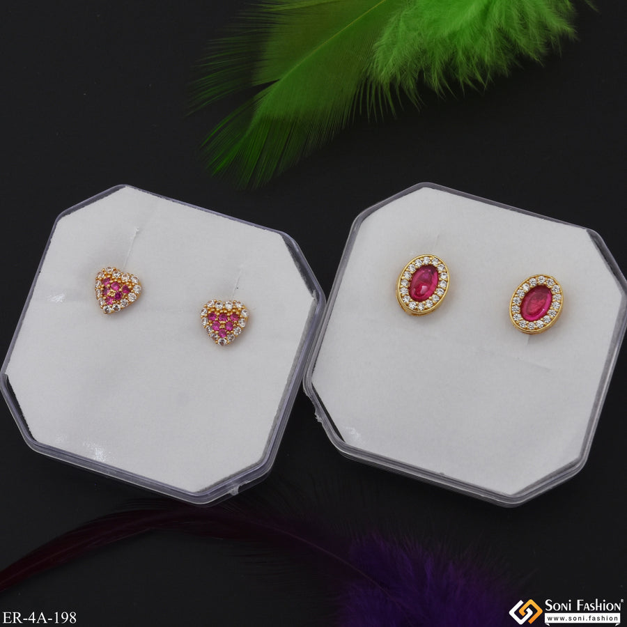 Discover the elegance of our 1 Gram Gold Plated with Diamond Fashionable Earrings, Style A110. These exquisite earrings feature a unique textured design in royal pink, complemented by sparkling diamond...