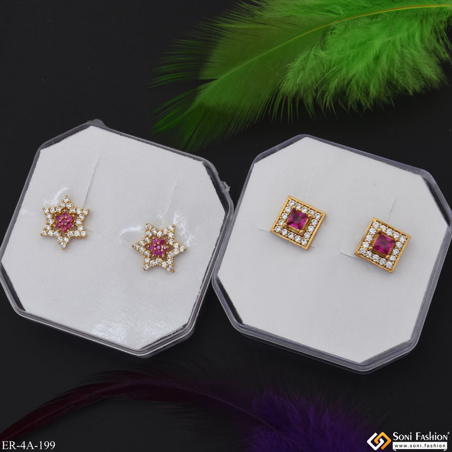 Black Diamonds Gold Plated Two Stud Earrings Set for Ladies - Style A200