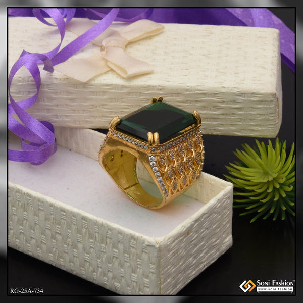 Green Stone with Diamond Sophisticated Design Gold Plated Ring for Men - Style A751
