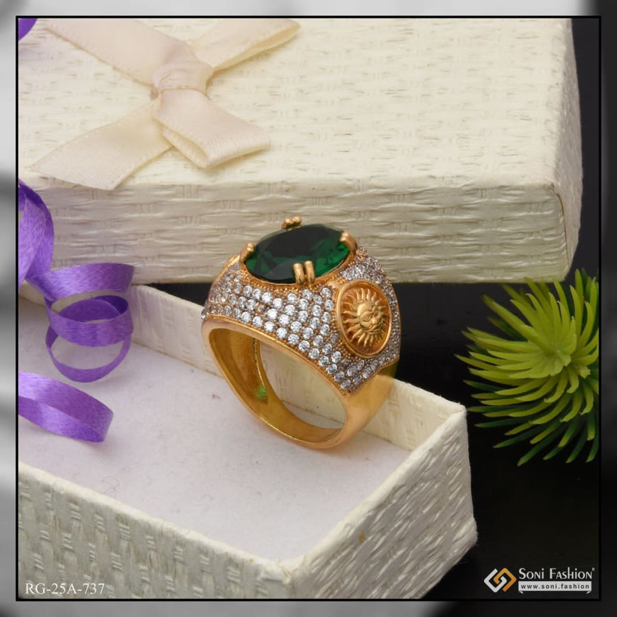 1 Gram Gold Plated Green Ring With Diamond Best Quality Ring For Men - Style A988