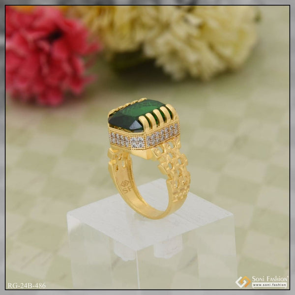 1 Gram Gold Plated Green stone Dainty Design Best Quality Ring for Men - Style B183
