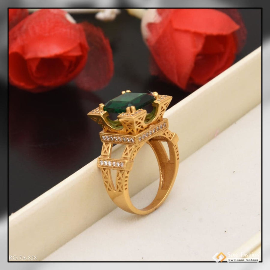 1 Gram Gold Plated Green Ring With Diamond Best Quality Ring For Men - Style A988