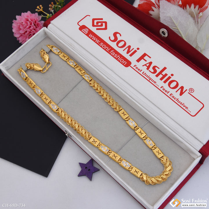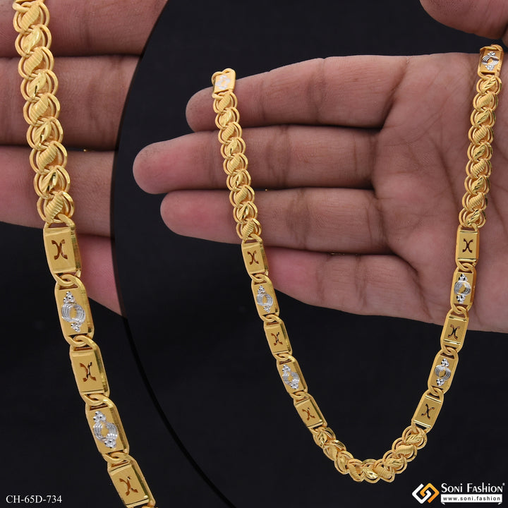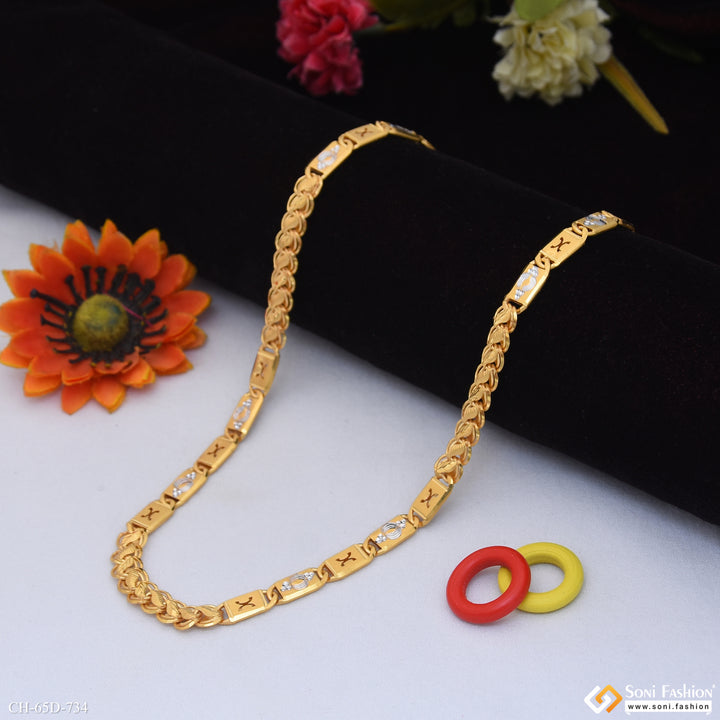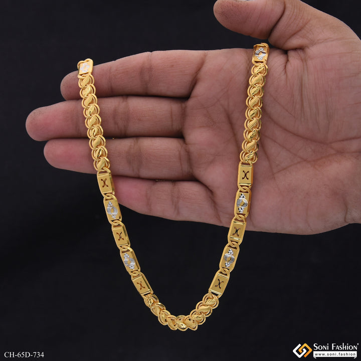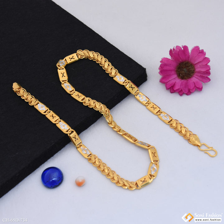 This delicate and stylish Kohli Nawabi chain for men is plated with 1 gram of high- quality gold, giving it a royal and shining appearance. The intricate filigree design and 20-inch...