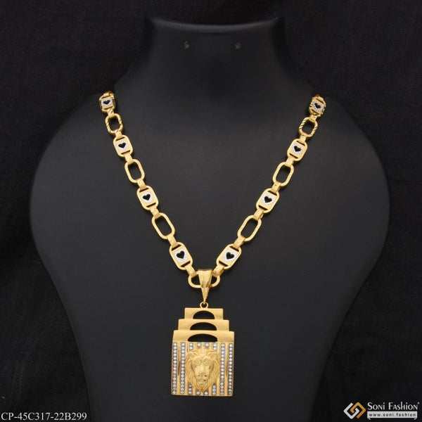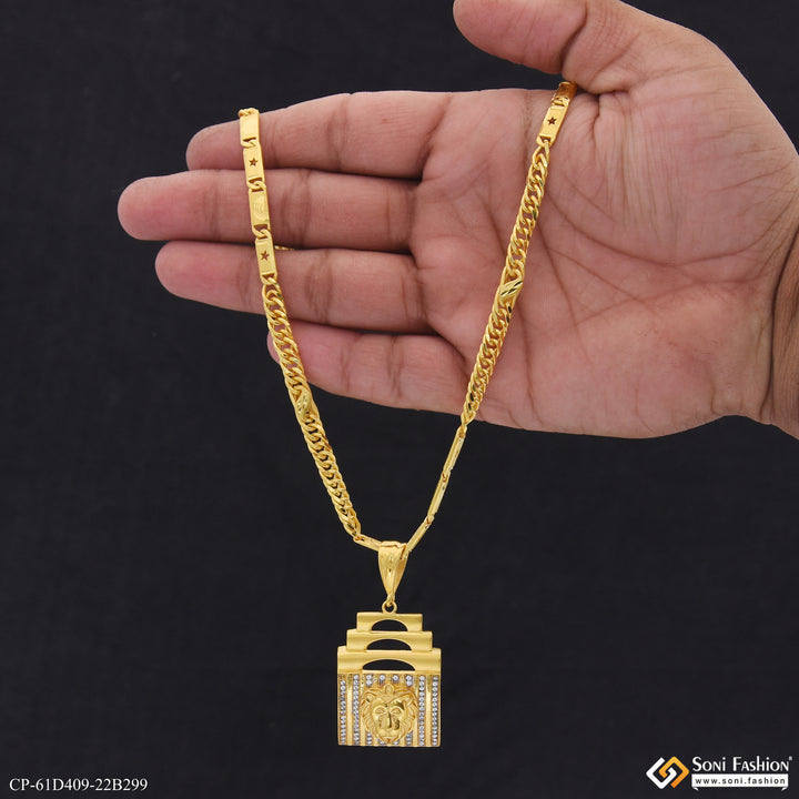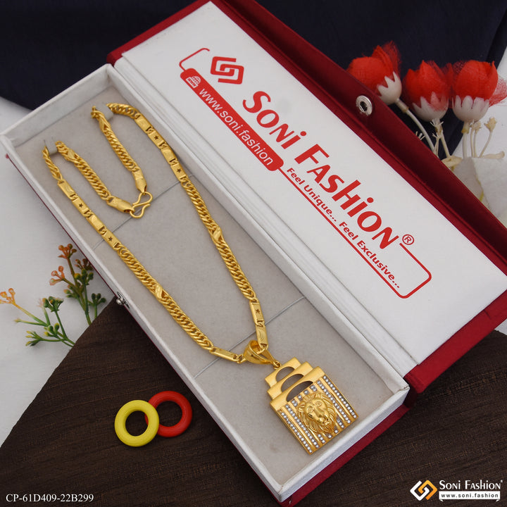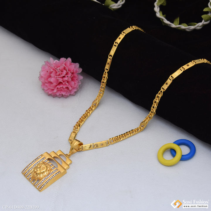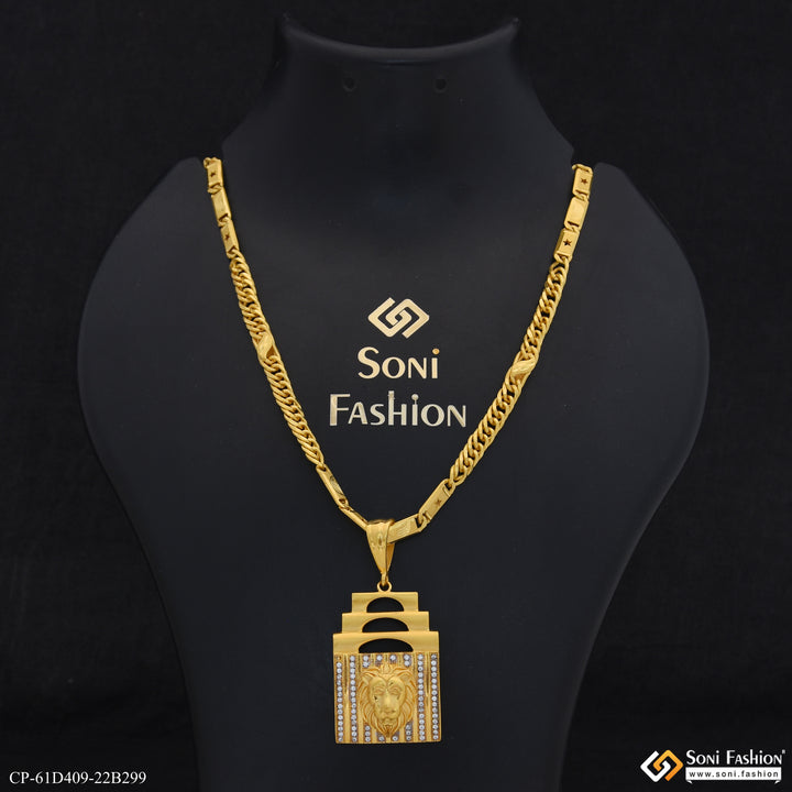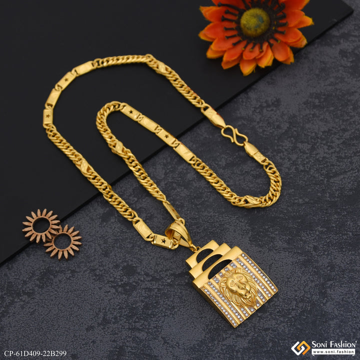 1 Gram Gold Plated Lion Pendant With Chain for Men (CP-D409-B299)