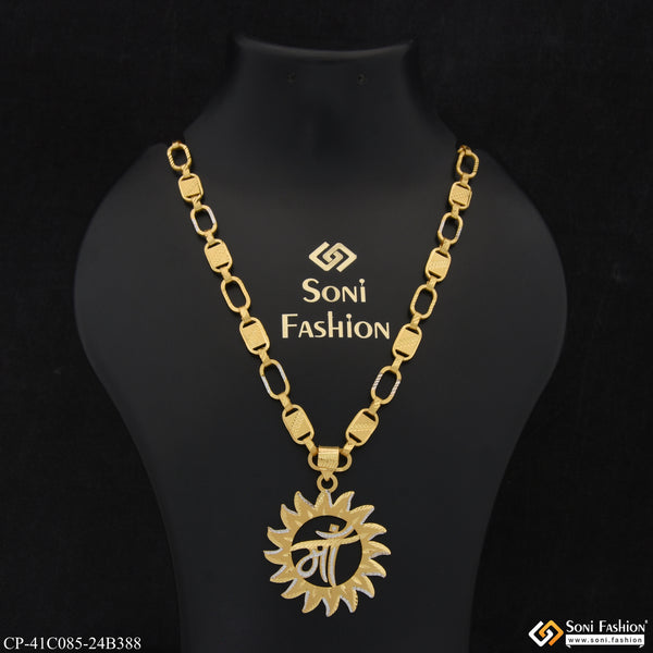 This 1 gram gold plated Lion pendant with chain for men combines royal Rajwadi and Nawabi chain design with a textured, shining filigree pattern. Handmade with high quality brass and a...