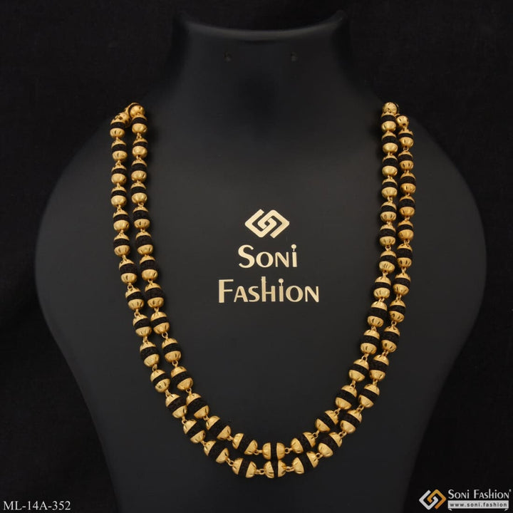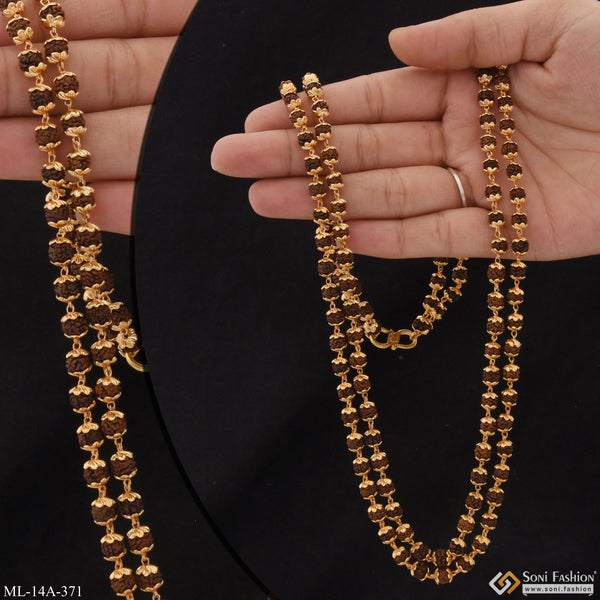 2 Line Best Quality Elegant Design Gold Plated Rudraksha Mala For Men - Style A352