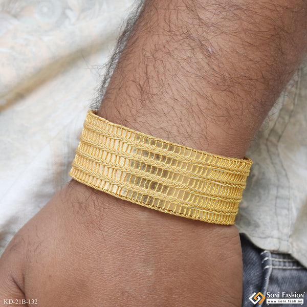 The Arrow with Diamond Latest Design High-Quality Gold Plated Kada for Men is a must-have accessory for any stylish man. Crafted with textured and shining brass, this royal and personalized kada...