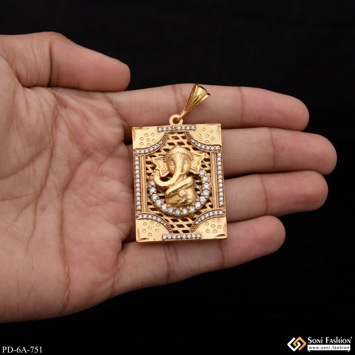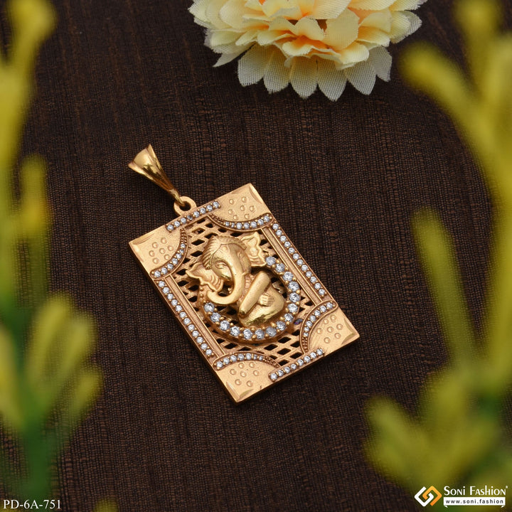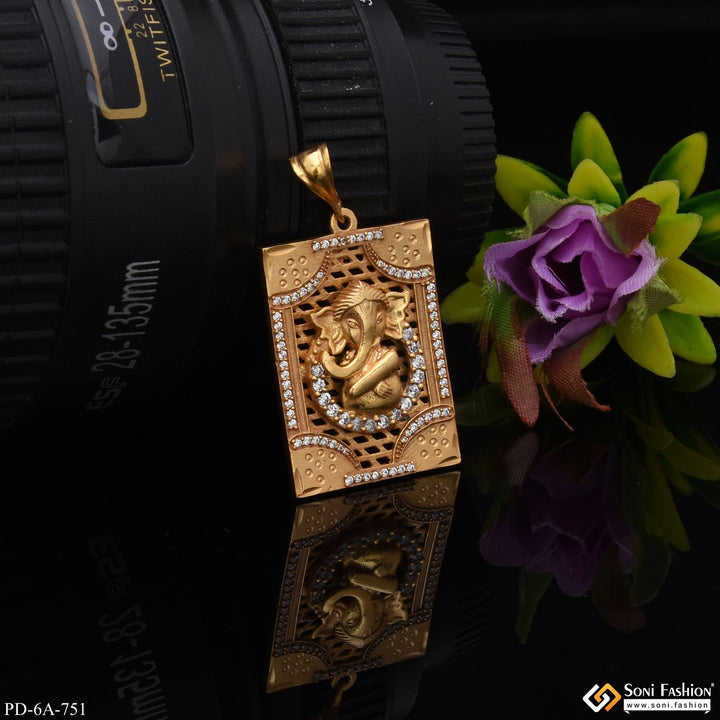Ganesha With Diamond Unique Design Gold Plated Pendant For Men - Style A751