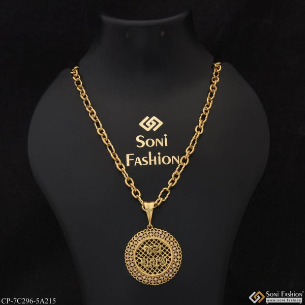 Elevate your style with our Jay Mataji Awesome Design Gold Plated Chain Pendant Combo for Men. Featuring a textured, shining, and royal design, this round pendant is perfect for the religious...