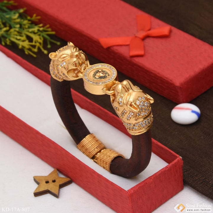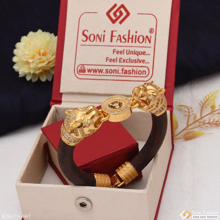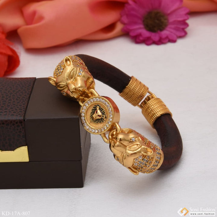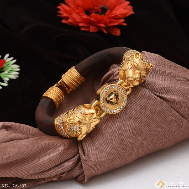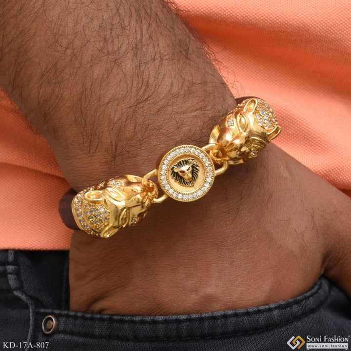 Lion with Diamond Best Quality Durable Design Gold Plated Kada for Men - Style A807