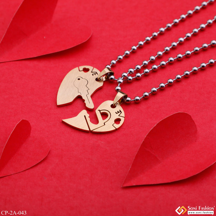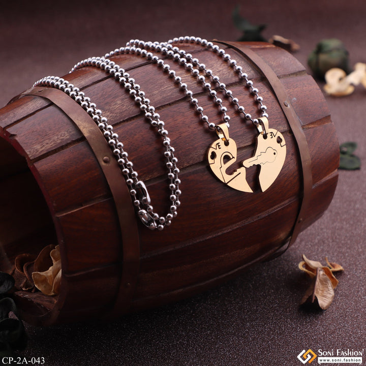 Celebrate love with our Lock n Key Couple Valentine Day Gift! This Couple Set includes 2 texturized stainless steel lockets, each with a personalized love letter, golden and silver chain pendants, and a hip hop-inspired design. Express your love this Valentine's Day with this latest and stylish gift for lovers.