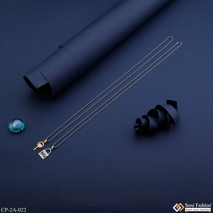Celebrate love with our Love Heart in Lock & Key Couple Chain Pendant Set. Made of textured stainless steel, this personalized set features both silver and golden chain pendants, each adorned...