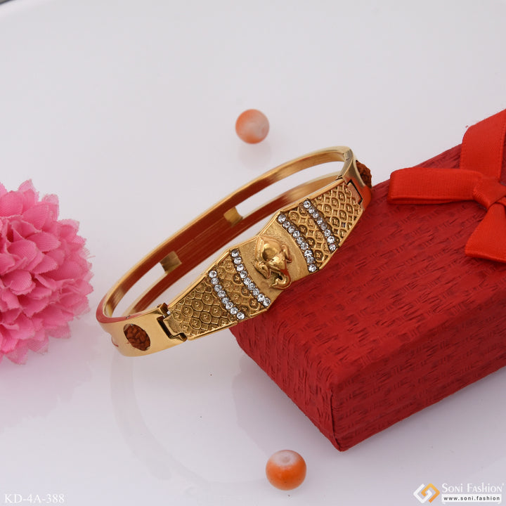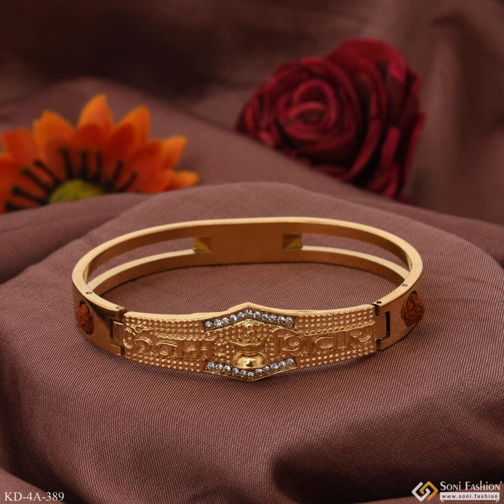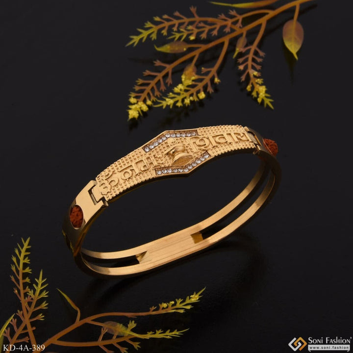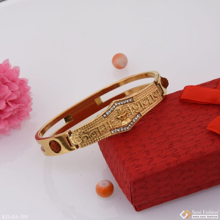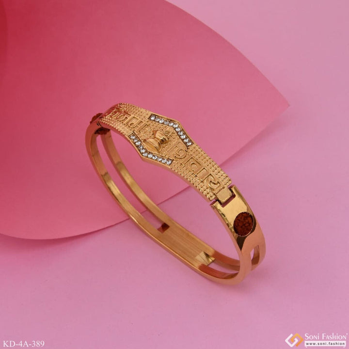 Om Namhh Shivay With Diamond Graceful Design Gold Plated Kada - Style A389