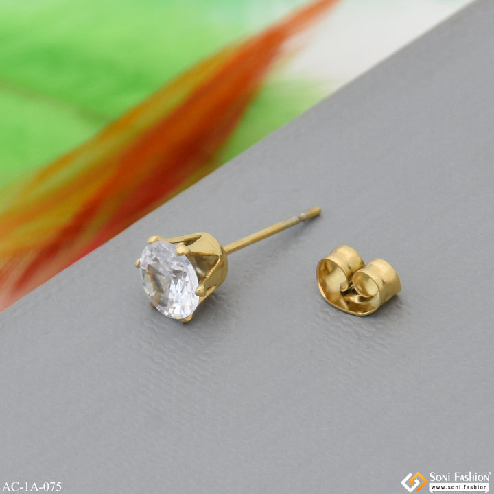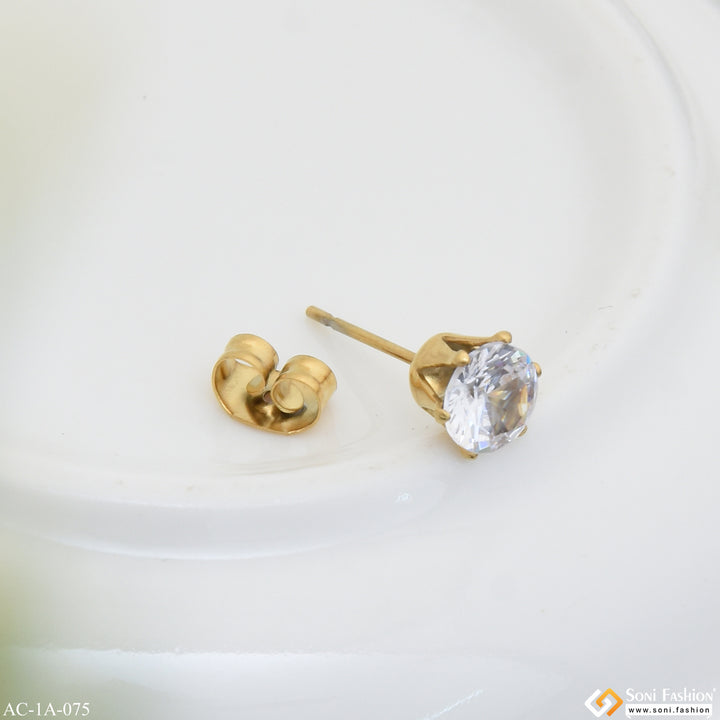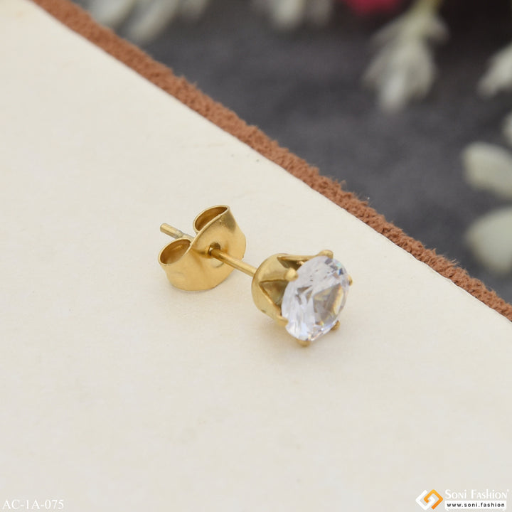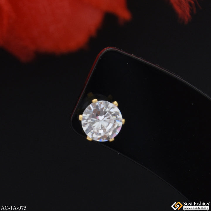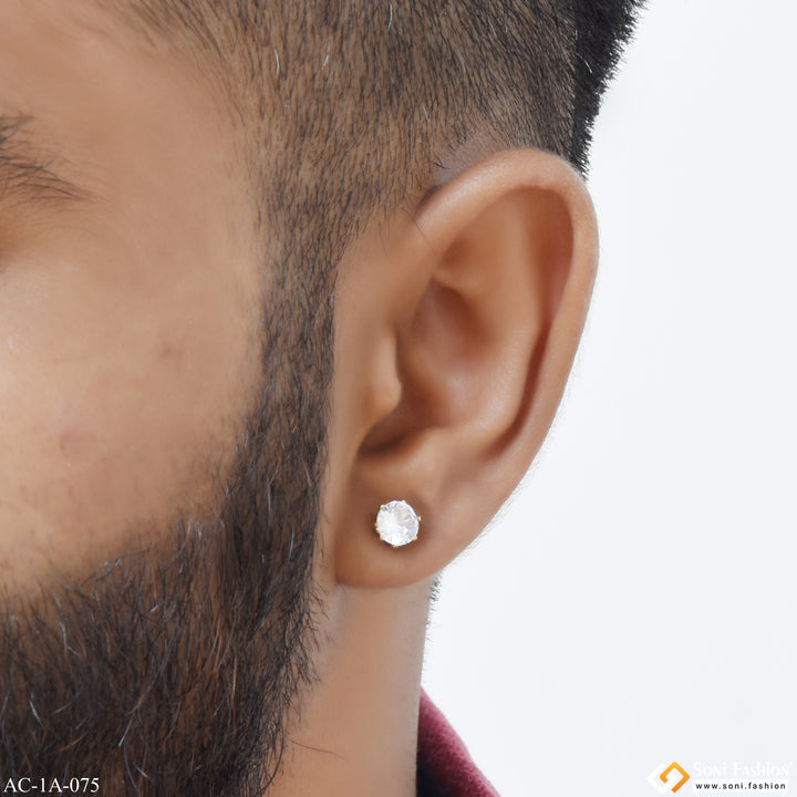 Round Shape White Stone Excellent Design Stud Earring for Men (1 Pc) - Style A075