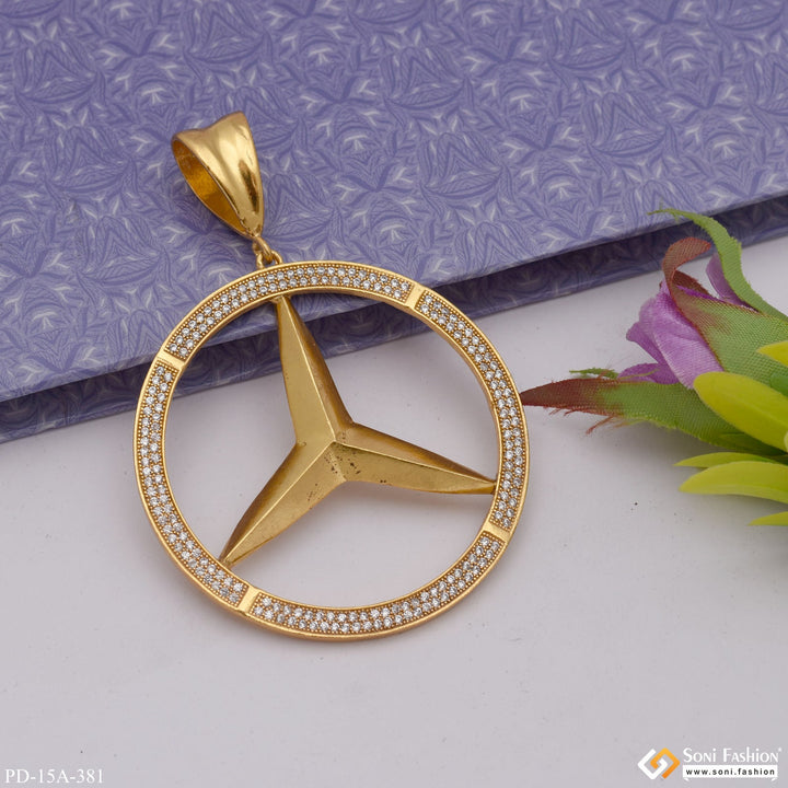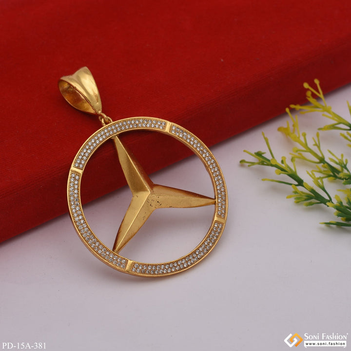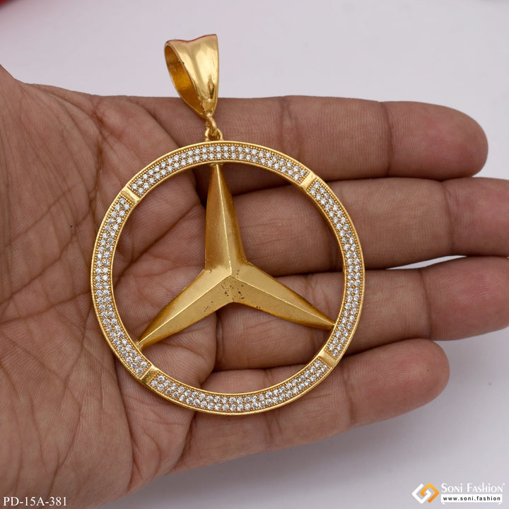 Triangle Logo Diamond Ring Pendant Premium-grade Quality Gold Plated For Men - Style A381