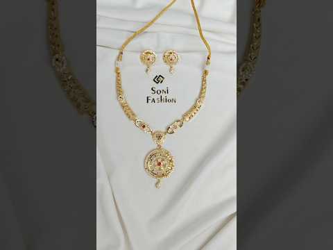 This gold plated necklace set features a thread design, giving it a unique and elegant look. The short necklace is perfect for any outfit, and its royal and shining appearance will...