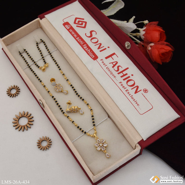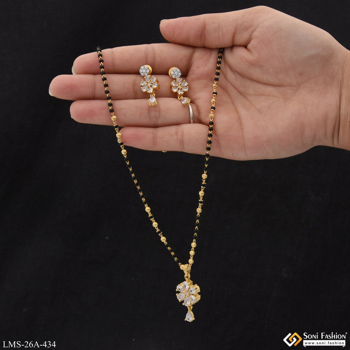 1 Gram Gold Plated Flower Best Quality Mangalsutra Set for Women - Style A434