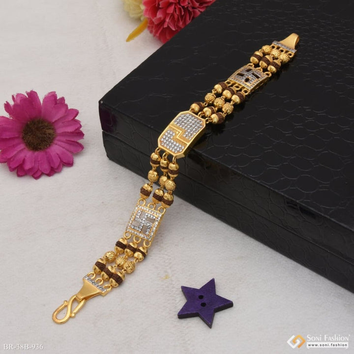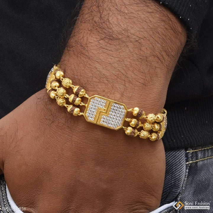 1 Gram Gold Plated Square with Diamond Funky Design Bracelet for Men - Style B936